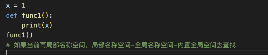如果当前再局部名称空间,局部名称空间-全局名称空间-内置全局空间去查找