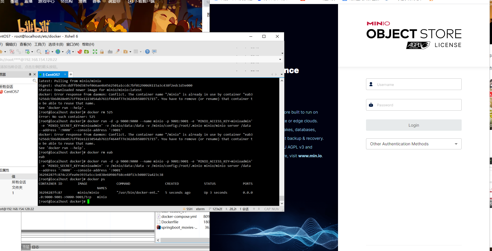 一开始使用的docker版本是用yum命令下载的,版本号为1.13.0,于是在创建MINIO容器的过程中,每次都有容器ID返回,但使用docker ps命令查看发现没有容器启动