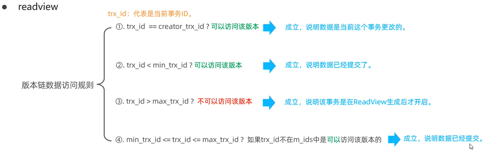 readview中包含了四个核心字段(属性):