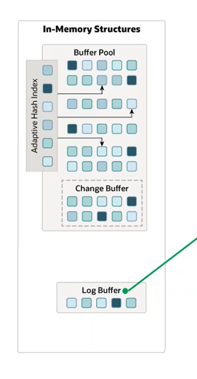 log buffer 日志缓冲区:用于保存要写到磁盘中的log日志数据(redo log、undo log),默认大小为16M,日志缓冲区的日志定期刷新到磁盘中。如果需要更新、插入或删除多行的事务,增加日志缓冲区的大小可以节省磁盘IO。