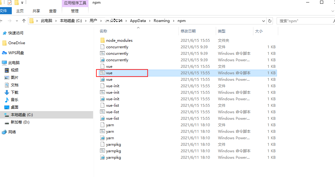 查找vue.cmd文件所在的目录位置(一般是nodeJs安装的路径下)