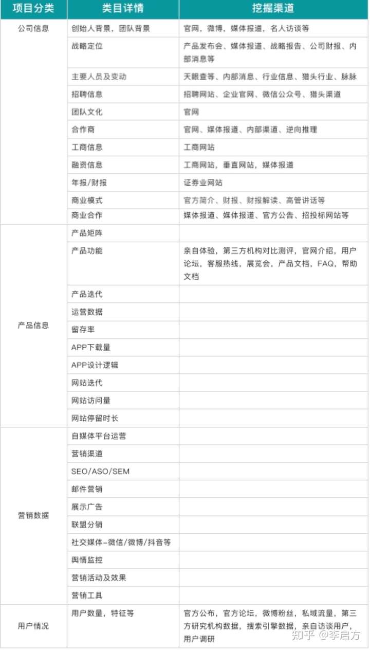 只要企业与⽤户有过接触,就会留下痕迹,我们就按照产品/服务,⽤户,运营&渠道,公司(组织架构)这4个⻆度收集竞品信息。