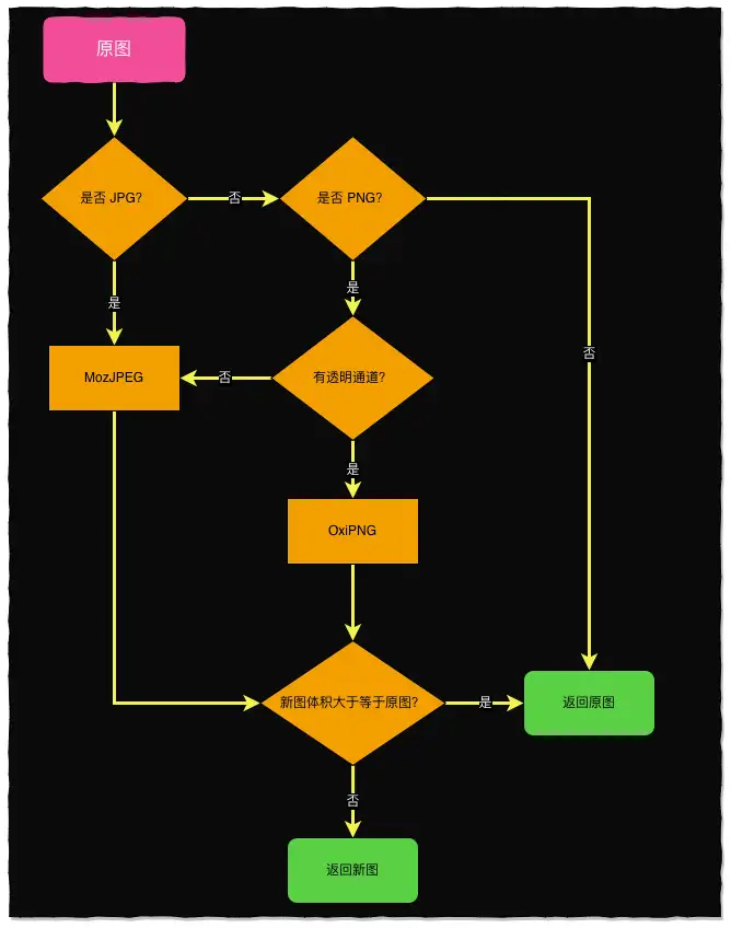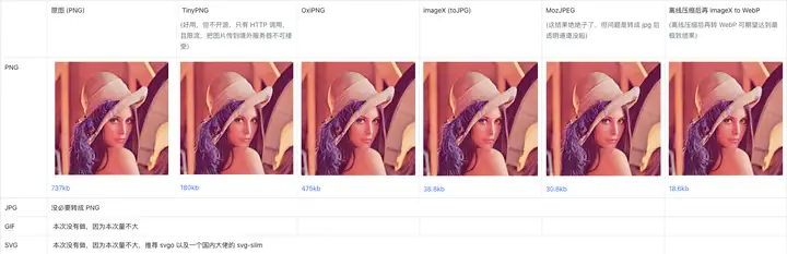 - PNG 如果 含有透明通道,使用 OxiPNG,否则使用 MozJPEG