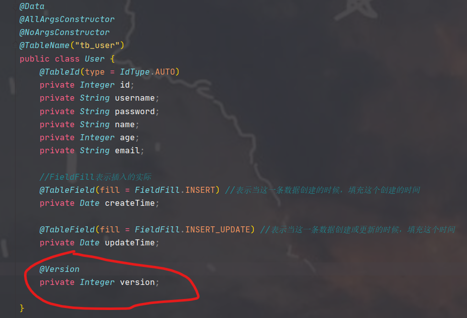 标记乐观锁,通过version字段来保证数据的安全性,当修改数据的时候,会以version作为条件,当条件成立的时候才会修改成功.