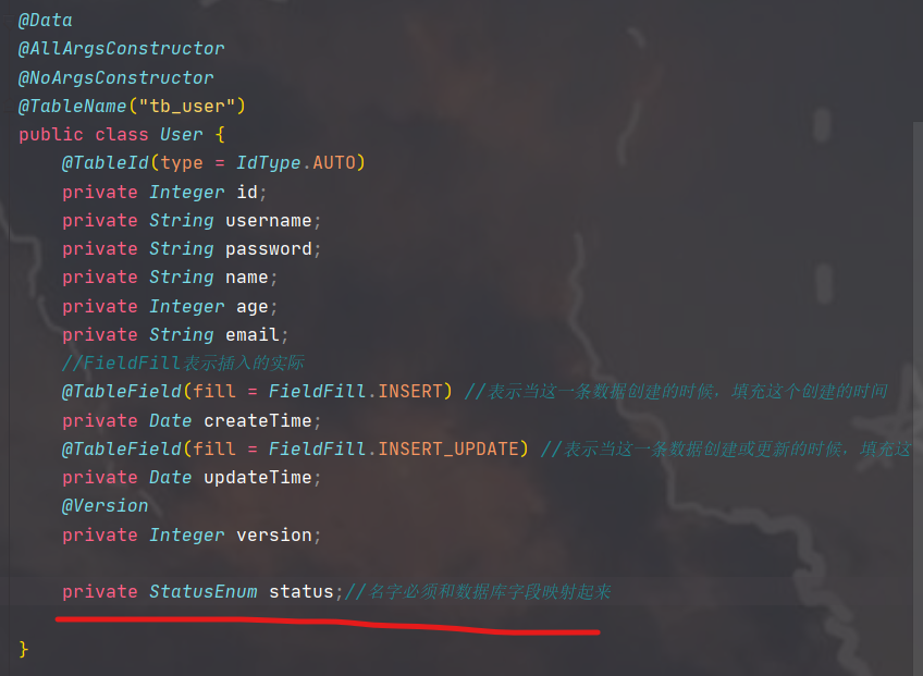 一、通过枚举类注解,将数据库字段映射成实体类的枚举类型成员变量