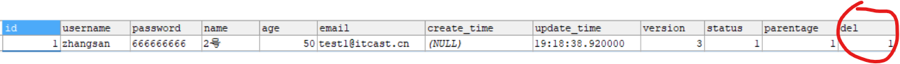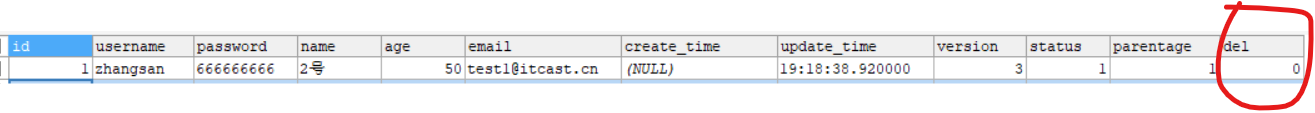 (1)数据表添加del字段(delete字段是关键字,执行时会报错),0表示未删除,1表示删除