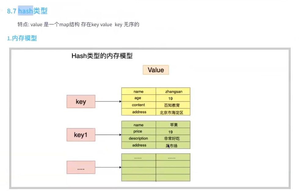 redis中关于hash类型数据的操作命令:单key:field-value field-value field-value