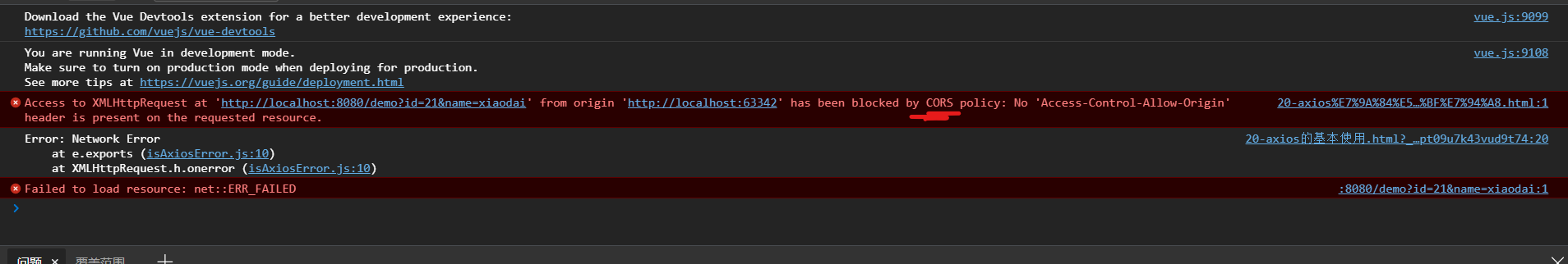 axios.get("http://localhost:8080/demo?id=21&name=xiaodai").then(function (response) {
