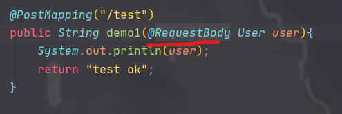 因为前端发送过来的是json数据,所以我们要写一个实体类来接收,同时用@RequestBody来处理