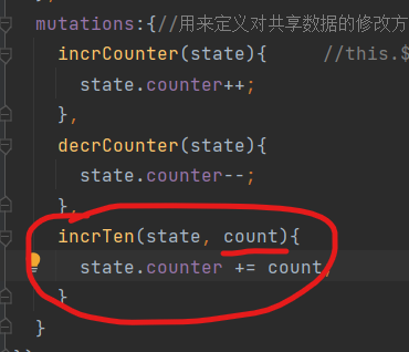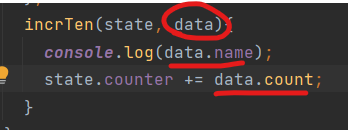 2、mutations属性:用来定义对共享数据的修改方法 在这里面定义方法,都有一个默认参数 默认参数会将状态对象传递给自定义方法