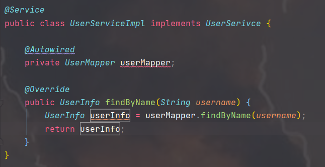 userInfo = userMapper.findByName(username);