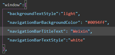 (1)"navigationBarBackgroundColor": "#0094ff" : 定义导航栏的颜色