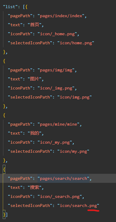 (4)selectedIconPath:表示已被选中的图标的路径(首页图标)