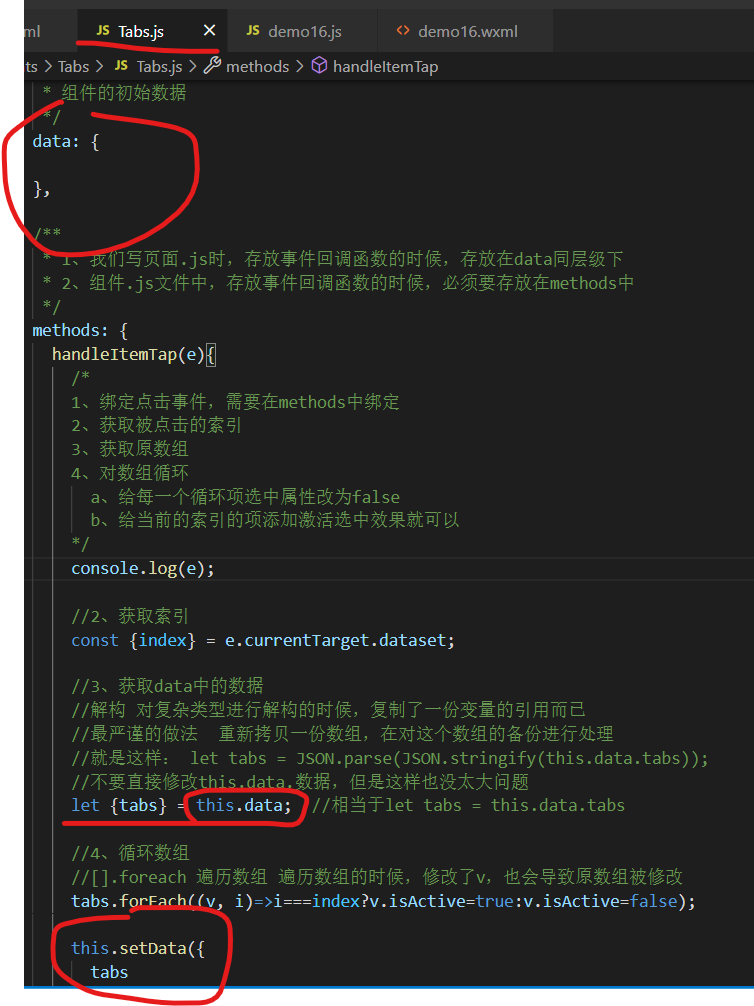 然后循环完毕后,我们又把tabs设置回了data中。就相当于