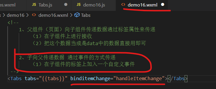 2、在父组件的wxml中,对子组件进行引用的地方绑定事件(注意bind后面的事件名,与自定义组件的trriger中的要保持一致)