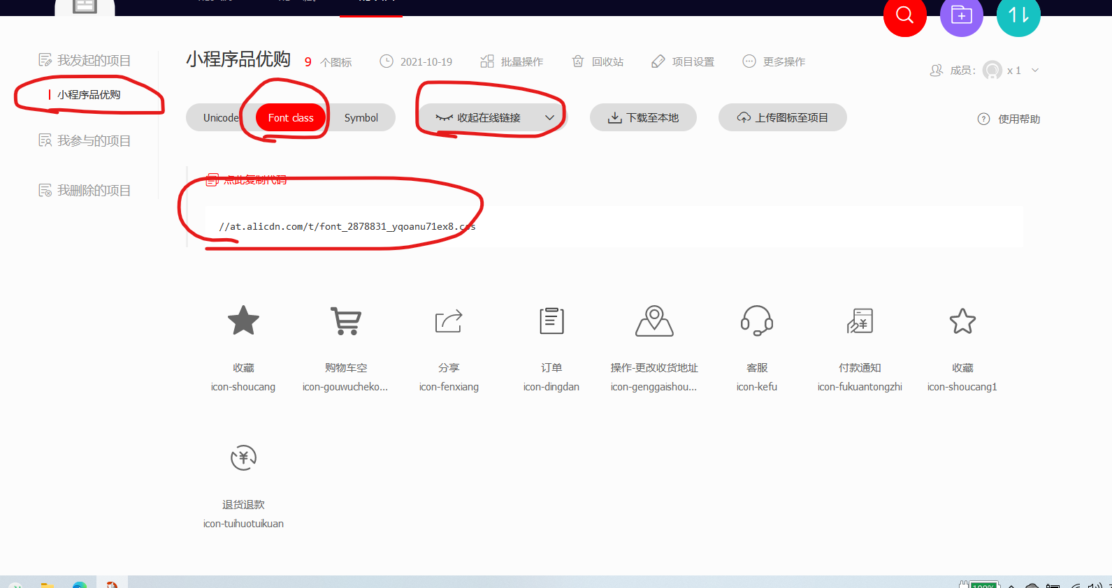 先点击font class,然后查看链接,点击链接,把链接中的代码复制到我们项目存放样式的文件夹styles下。