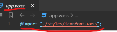 5、然后在我们的全局app.wxss文件中,引入我们刚才创建的wxss文件