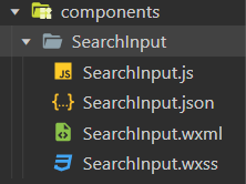 1、在微信开发者工具中,在conponents中新建SearchInput文件夹,然后新建component,输入SearchInput就会帮助我们建好那四个文件。
