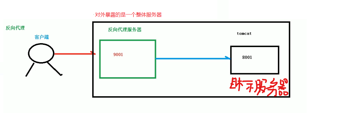 反向代理,其实客户端对代理是无感知的,因为客户端不需要任何配置就可以访问,我们只需要将请求发送到反向代理服务器,由反向代理服务器去选择目标服务器获取数据后,在返回给客户端,此时反向代理服务器和目标服务器对外就是一个服务器,暴露的是代理服务器地址,隐藏了真实服务器IP地址
