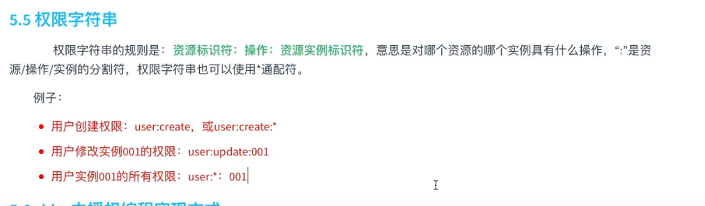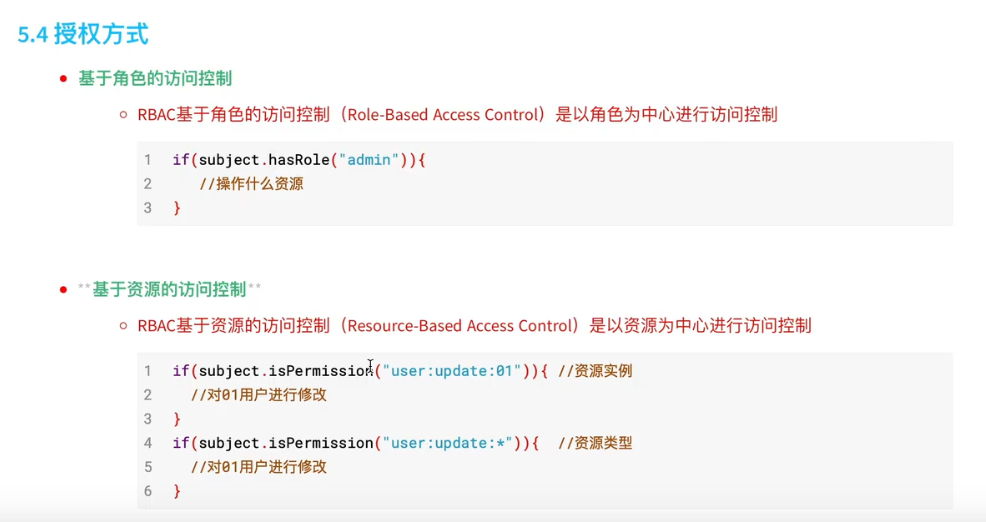 (3)how,权限/许可(Permisson),规定了主体对资源的操作许可,权限离开资源没有意义,如用户查询权限,用户添加权限、某个类方法的调用权限、编号为001用户的修改权限等,通过权限可知主体对那些资源都有那些操作许可