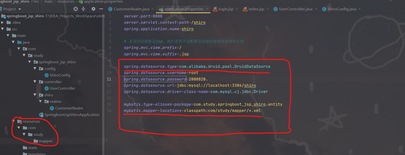 (4)在application.properties配置文件中编写数据库和mybatis相关配置