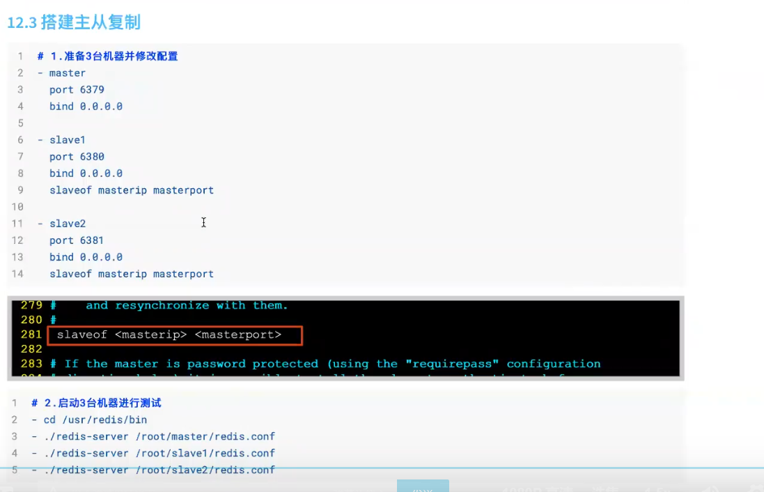 注意:redis5版本中,不是找slaveof来配置主节点的ip和端口,是找replicaof进行配置