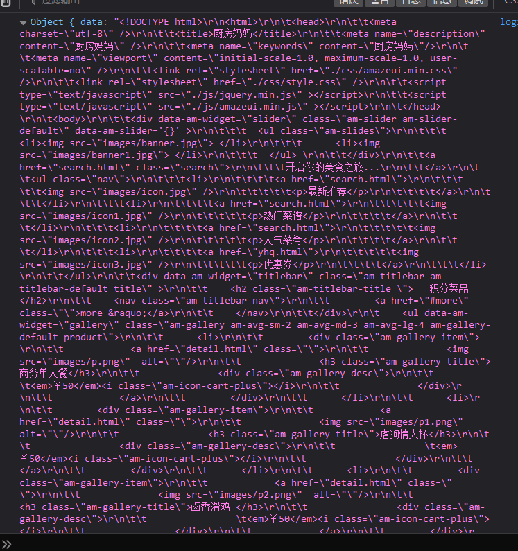 如果我们使用后端请求向前端返回请求成功的数据,因为我们重定向页面了,所以并不能从返回数据的data中拿到数据,相反,我们拿到的data数据是页面源代码。所以可以通过判断result.data!="",即不等于空进行条件限制。具体代码如下: