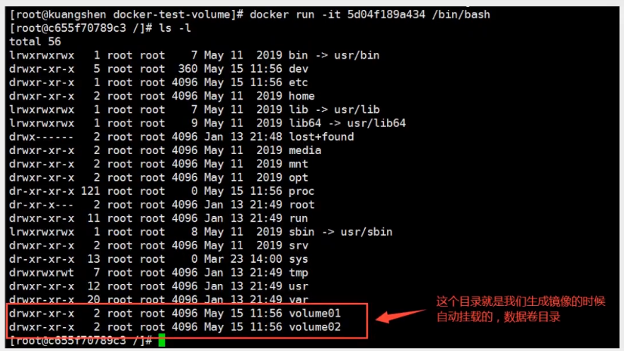 cd到/var/lib/docker/volumes/c51c75b11a69c526a97a07b03ce2ec74d8e77aa150b736291777c1c204a8aecc/_data,如果我们在容器的volume01中创建了container.txt文件,那么在这个路径中也一定有这个文件