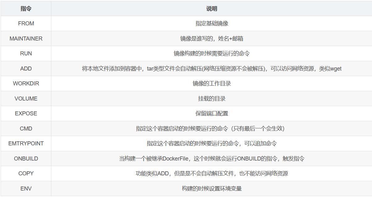 Dockerfile指令介绍的官方文档:https://docs.docker.com/engine/reference/builder/