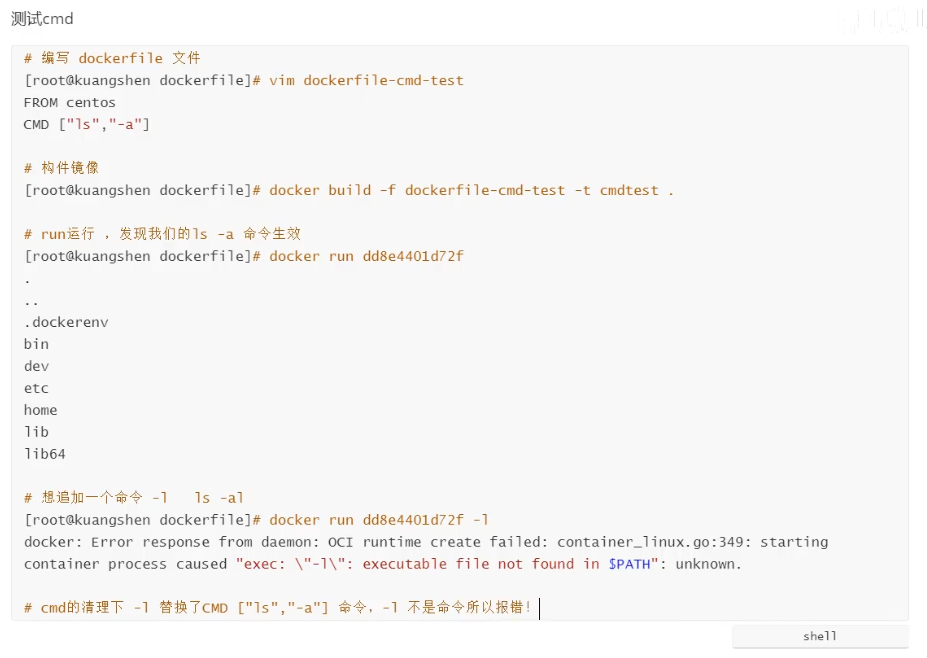 将CMD该成ENTRYPOINT就不会出现错误,因为是追加命令