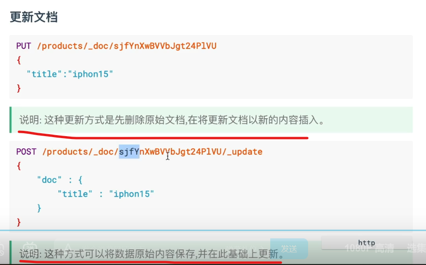 更新文档(基于id更新, 删除原始文档,再重新添加,所以要求我们将原始数据添加进去再修改相应字段)