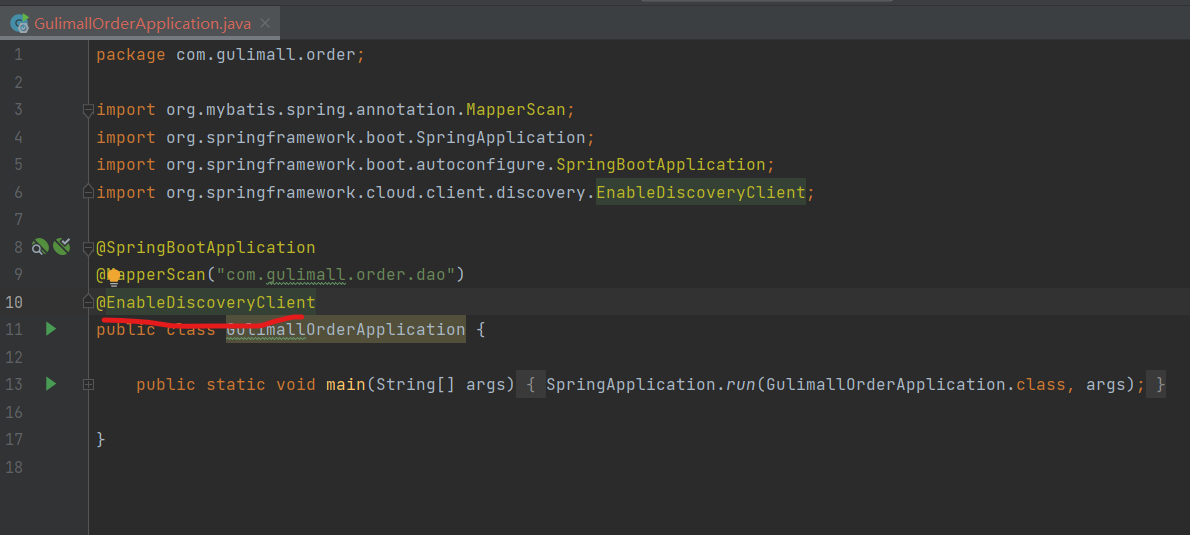 3、使用@EnableDiscoveryClient 开启服务注册发现功能