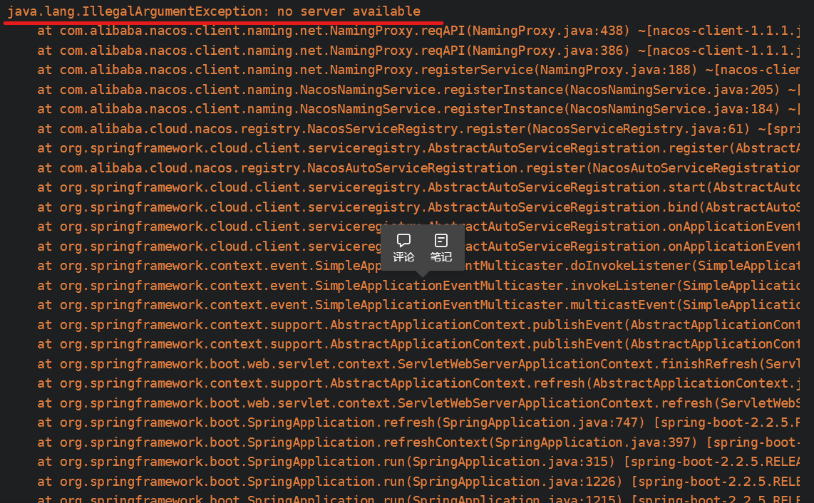 客户端启动报错java.lang.IllegalArgumentException: no server available的解决方案 SpringCloud中 Nacos做注册中心