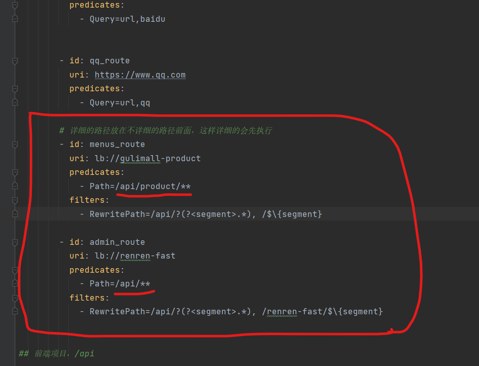 (因为我们在前面章节弄登录时,默认所有通过网关的路由都转发到了renren-fast,所以要进行如上的修改)