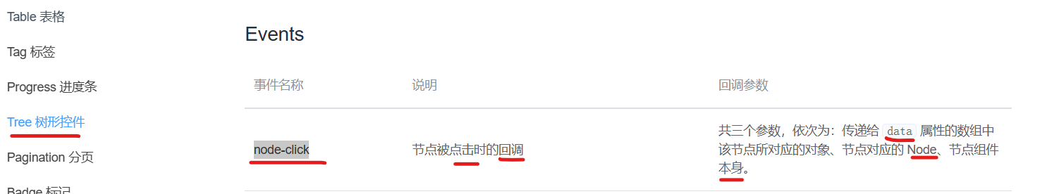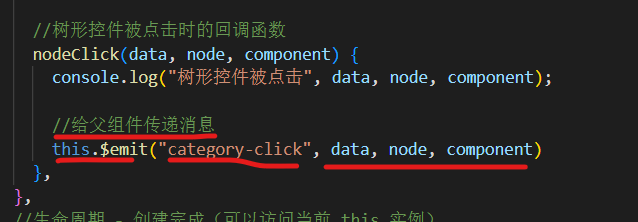 1.1)使用elementui的树形控件的node-click事件,当树形控件被点击时,触发一个回调函数,同个这个回调函数给父组件发送消息
