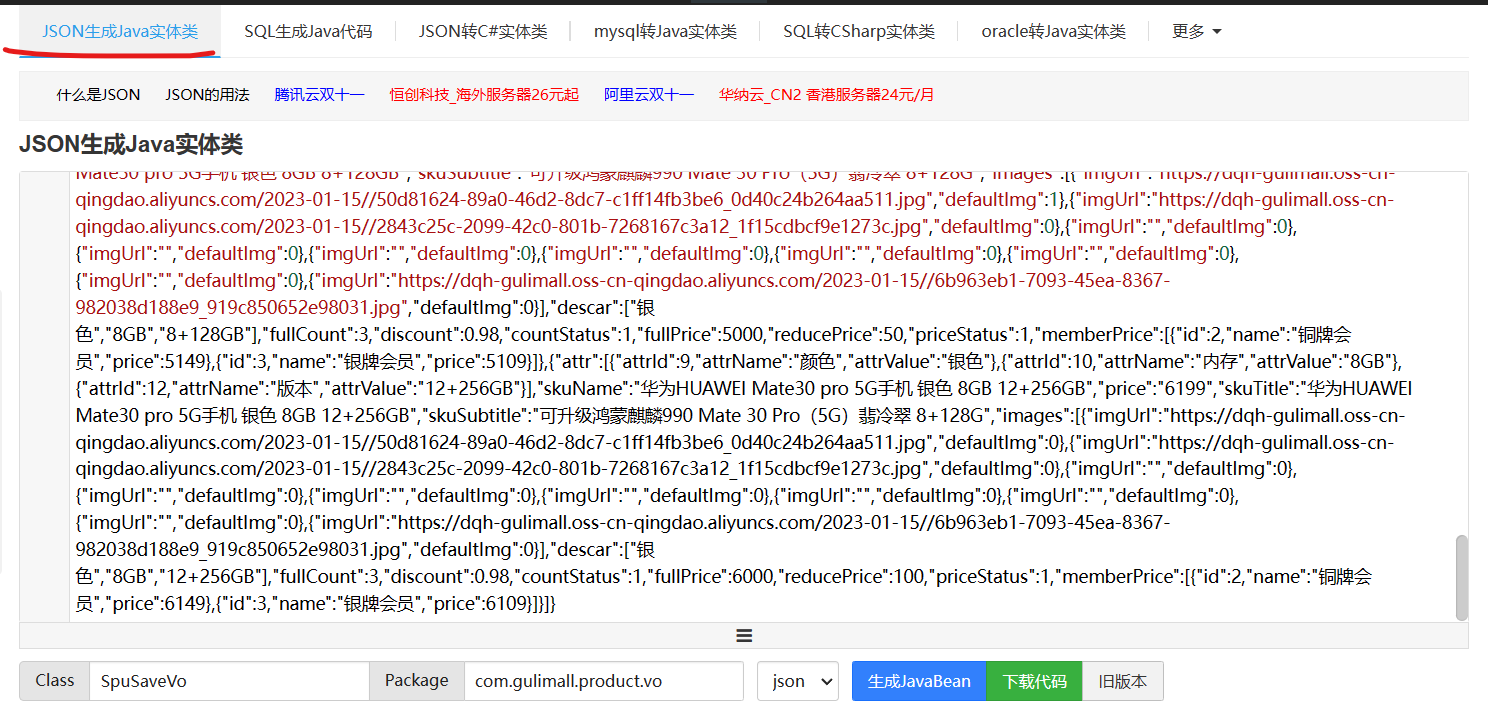 可以直接将我们的json数据生成对应的Java实体类,不用我们手写了