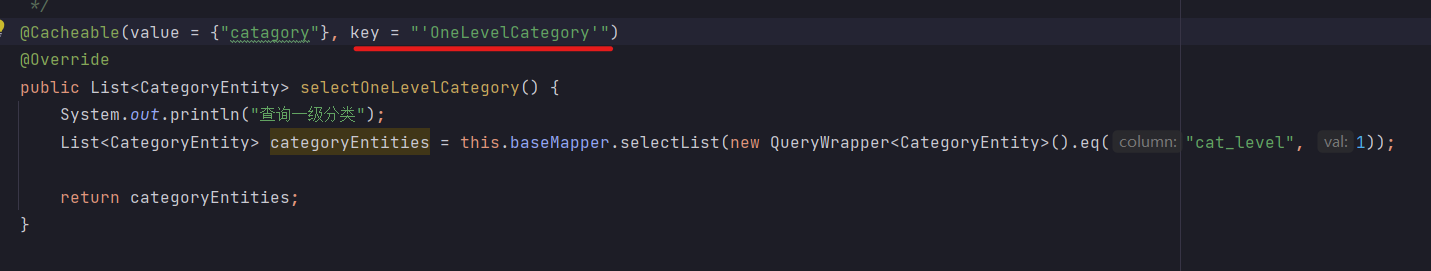 我们第一次调用会打印,但是以后调用就不会打印,并且redis中存储了我们的catalog数据