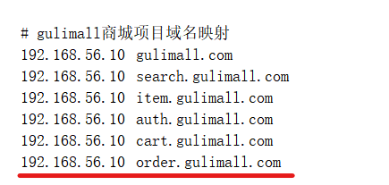 注意我们的order.gulimall.com已经在host文件中配置了映射,会直接映射到我们的虚拟机。