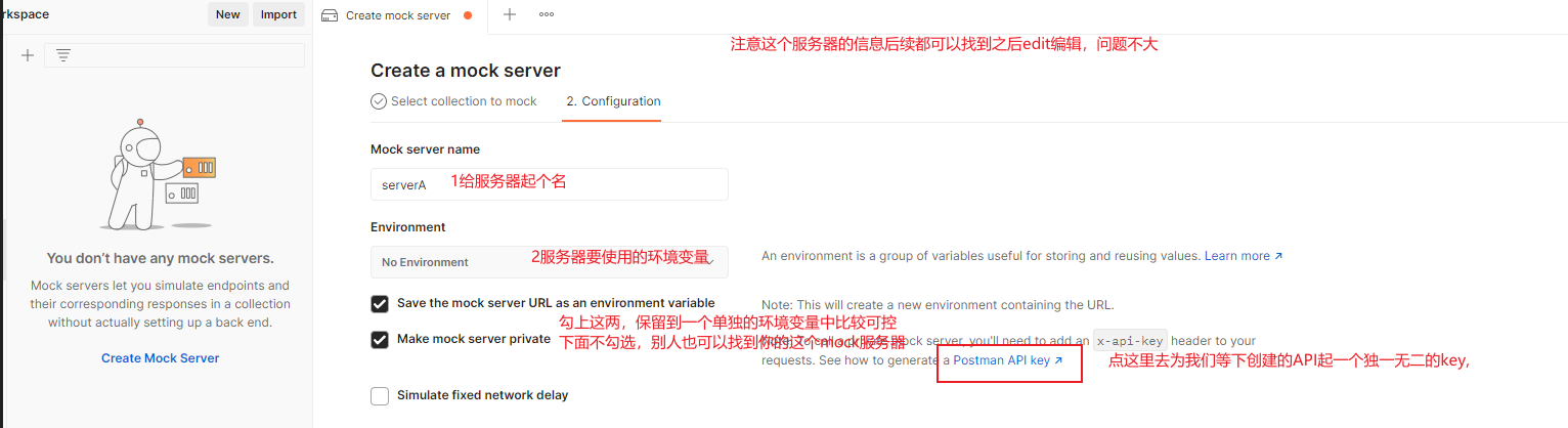 - 如果不想用,在第一步创建服务器的时候不要勾选“make the server private”就可以了,只要有你的这个服务器的URL就能调用。