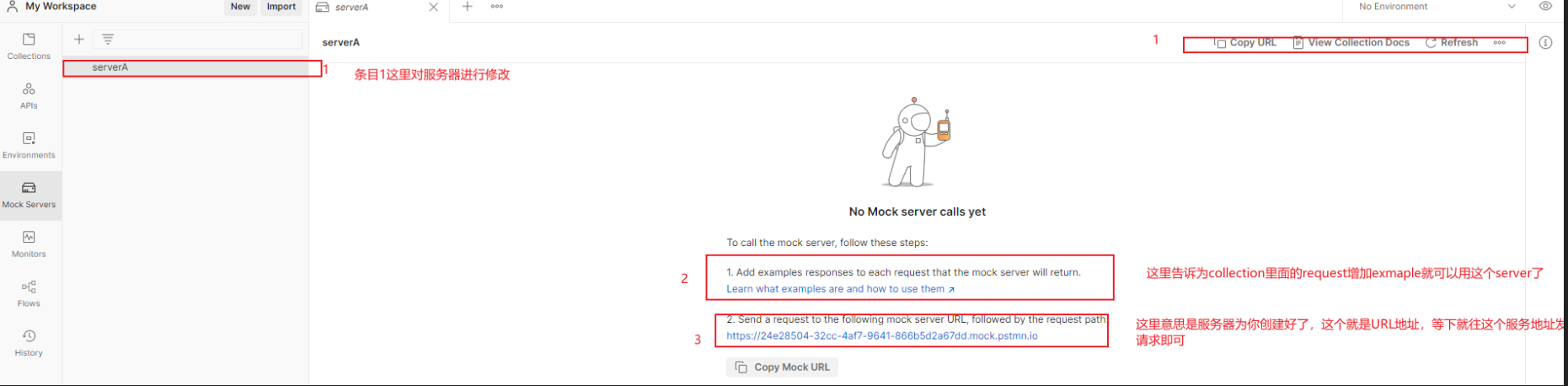 2.创建服务器:创建一个虚拟服务器,通过postman可以虚拟出一个虚拟服务器供你在上面注册服务等,如下图。