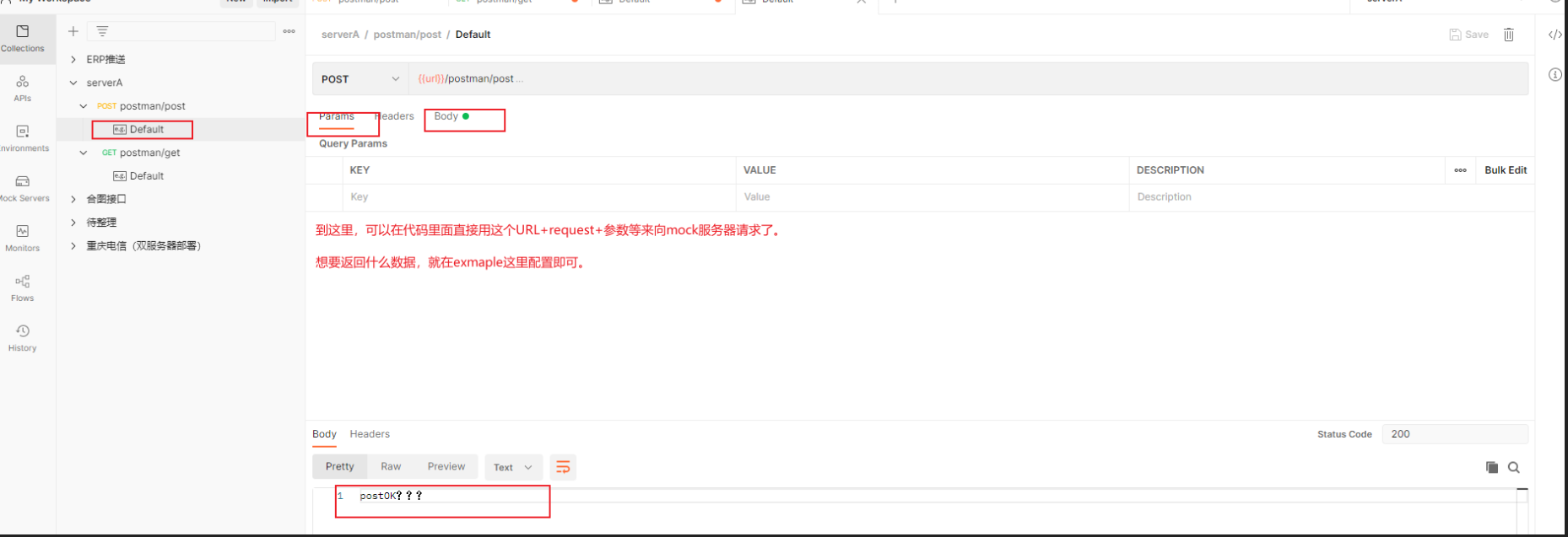- 由于是在是不会使用postman的mock功能,暂时就理解到这了,毕竟都是在代码里面加一个mock服务器就方便多了,毕竟调试更方便,有空再写一下怎么写个mock服务。