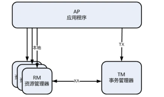 由X/Open组织定义了分布式事务的模型,目的是允许多个资源(如数据库,应用服务器,消息队列,等等)在同一事务中访问,这样可以使ACID属性跨越应用程序而保持有效,定义了如下几个角色: