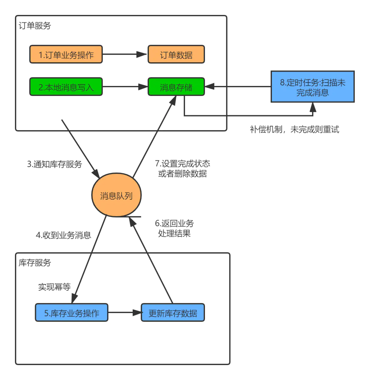 7.轮询本地消息表,把未完成消息处理了, 可以重试,手动处理,消息设置为失败