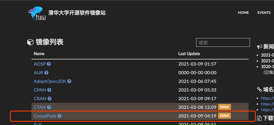 我是使用后发现下载速度很慢,非常容易失败.便看了一下清华镜像的网站,发现cocoapods的镜像源有些问题.
