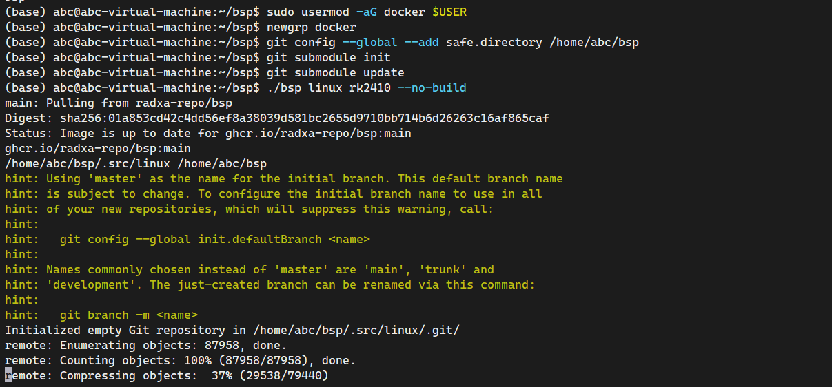 (base) abc@abc-virtual-machine:~/bsp$ sudo ./bsp linux rk2410 --no-build