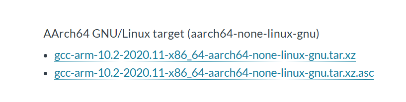 tar -xvf gcc-arm-10.2-2020.11-x86_64-aarch64-none-linux-gnu.tar.xz
