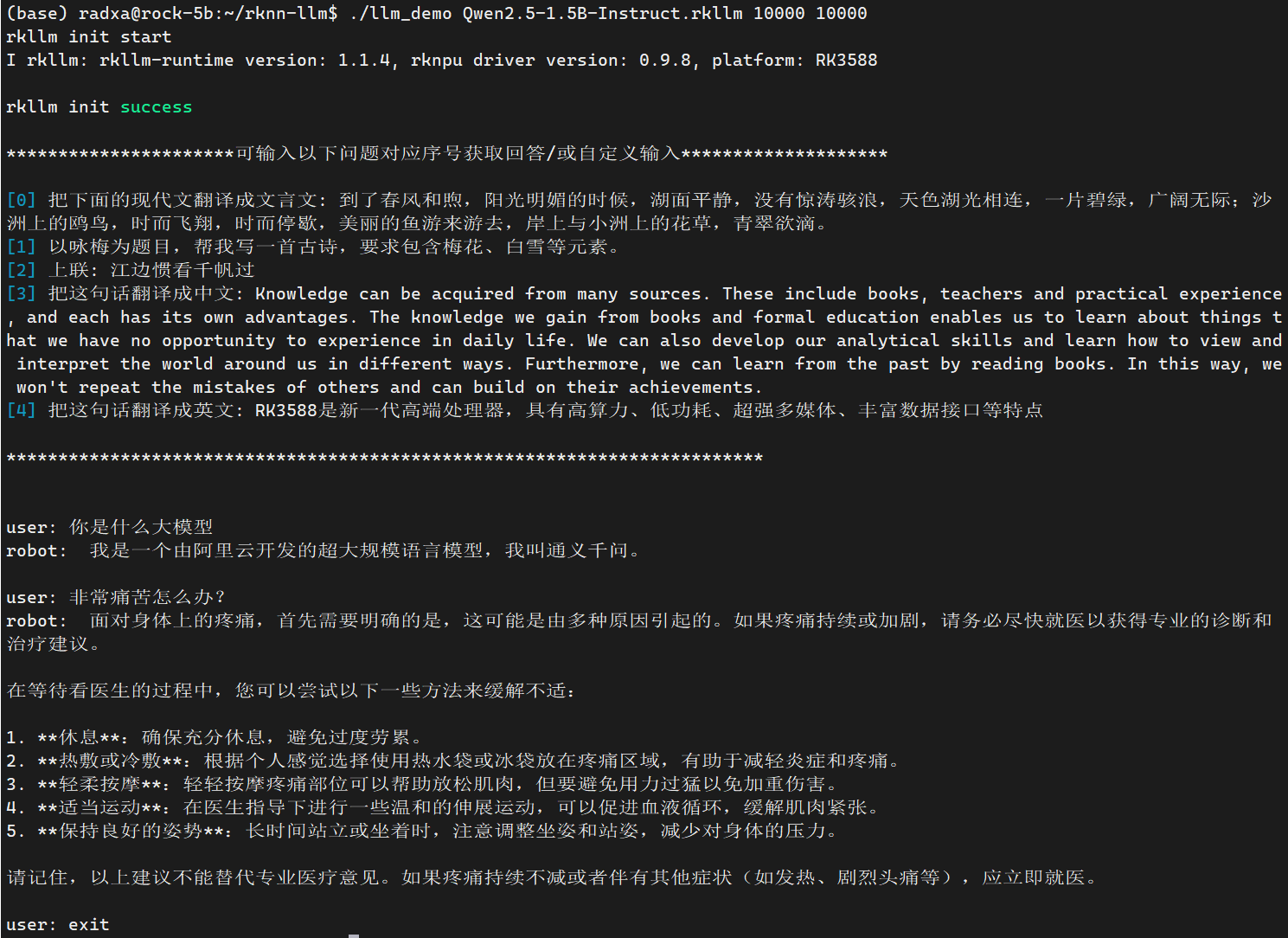 # ./llm_demo Qwen2.5-1.5B-Instruct.rkllm 10000 10000