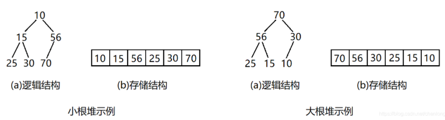 小堆:将根结点最小的堆叫做小堆,也叫最小堆或小根堆。