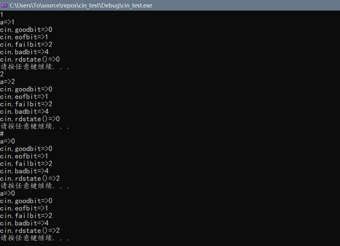 cout << "cin.failbit=>" << cin.failbit<< endl;