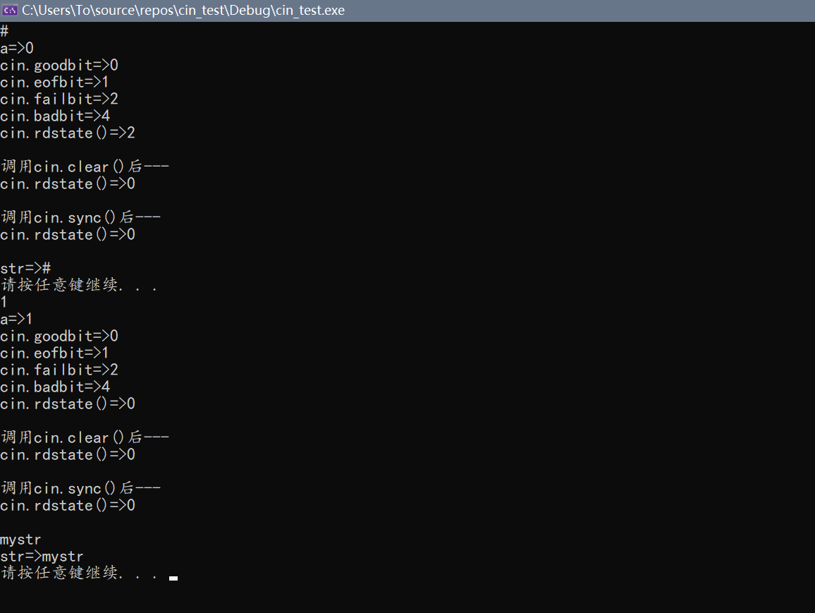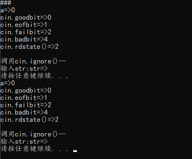 cout << "cin.rdstate()=>" << cin.rdstate() << endl<<endl;